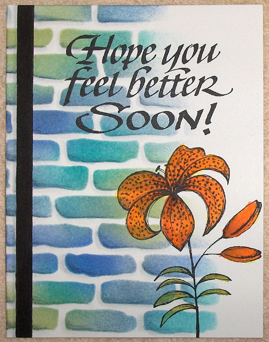 So here I am to show you a couple of cards I've made recently. I bought a couple flower stamps on a facebook group. One is a lily. It reminds me of the tiger lilies my mom always had in her garden. So the first card I made with it is a tiger lily.